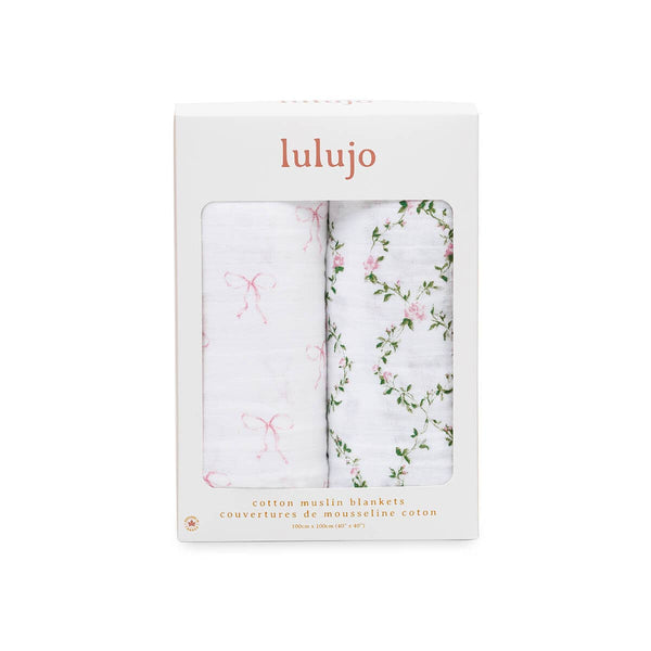 2-pack Cotton Swaddles - Bows & Rose Trellis