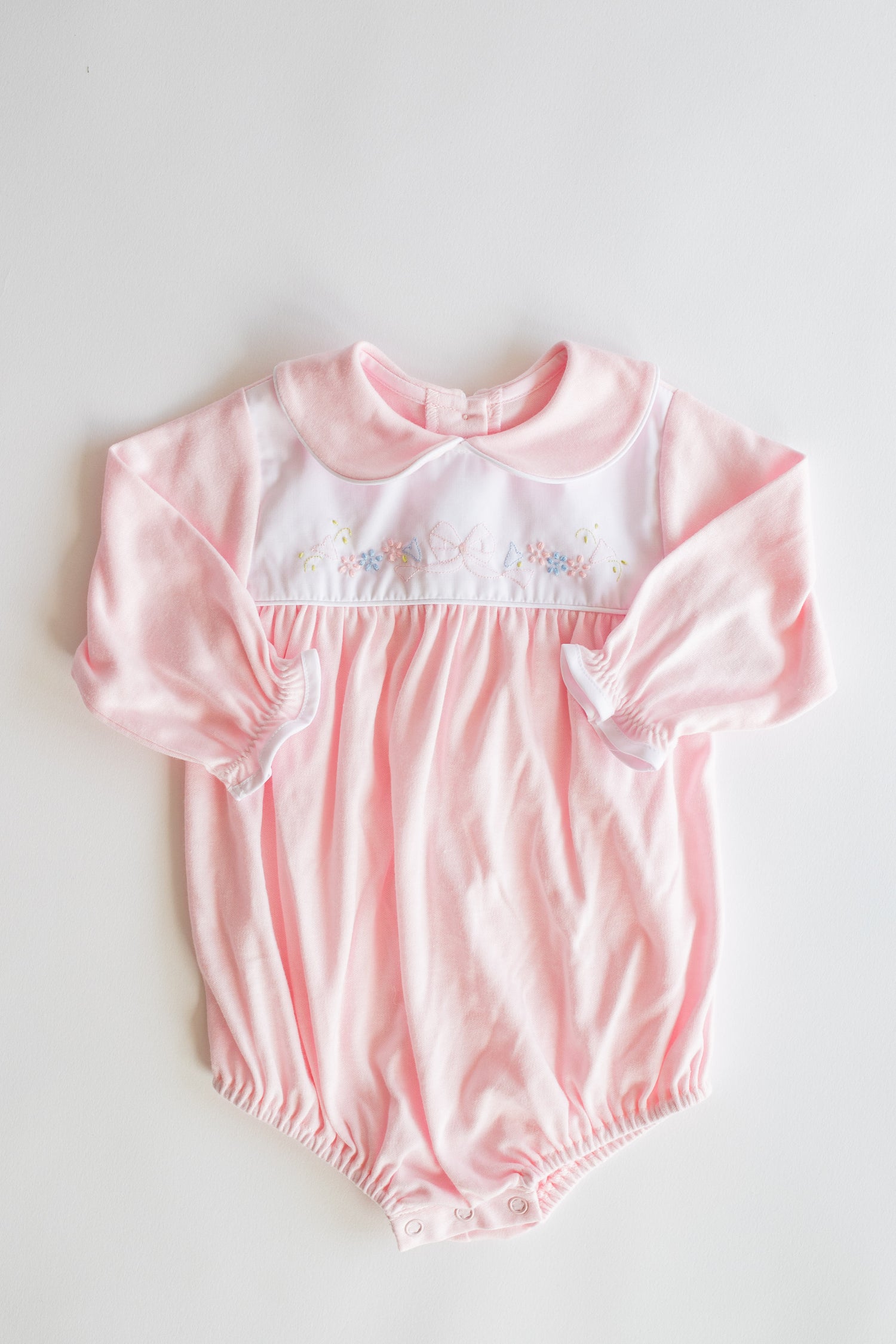 Embroidered Knit Long Sleeve Bubble | Ribbon Blooms
