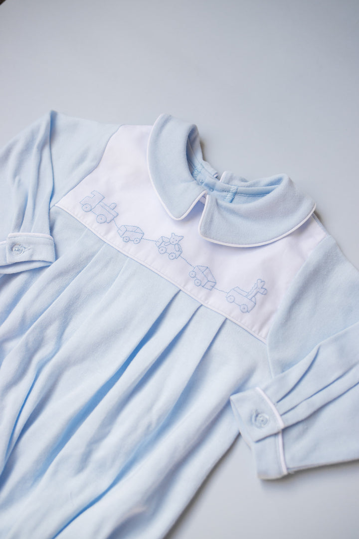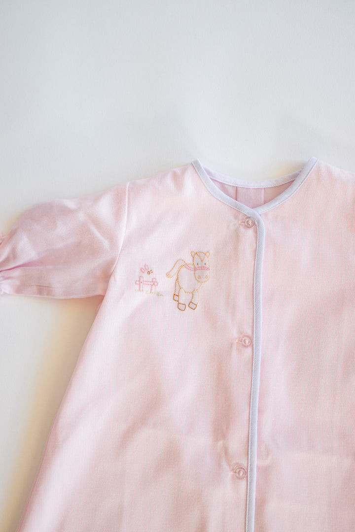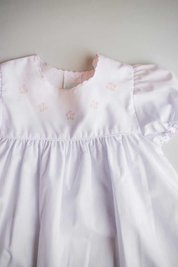 Cross Embroidered Pleated Collar Daygown | Pink Trim