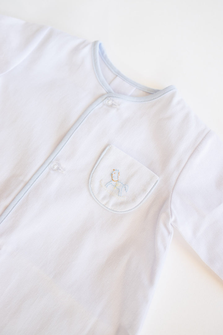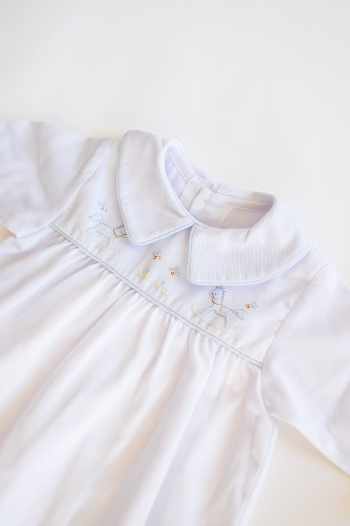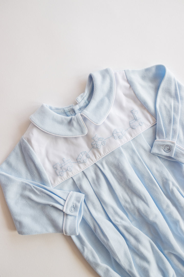 Cross Embroidered Pleated Collar Daygown | Blue Trim