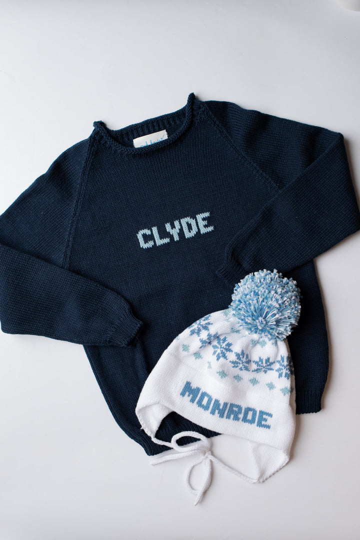 Name Sweater | Navy with Light Blue