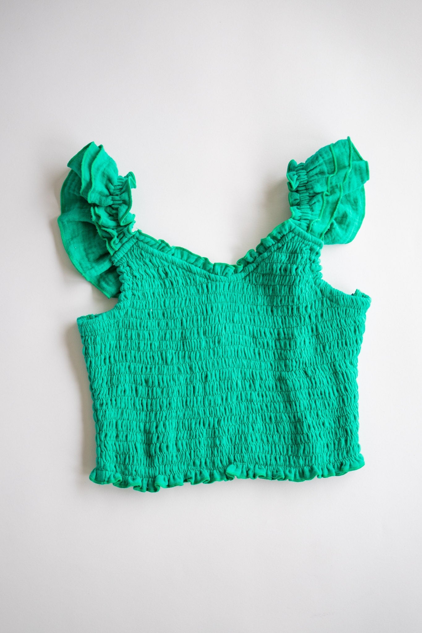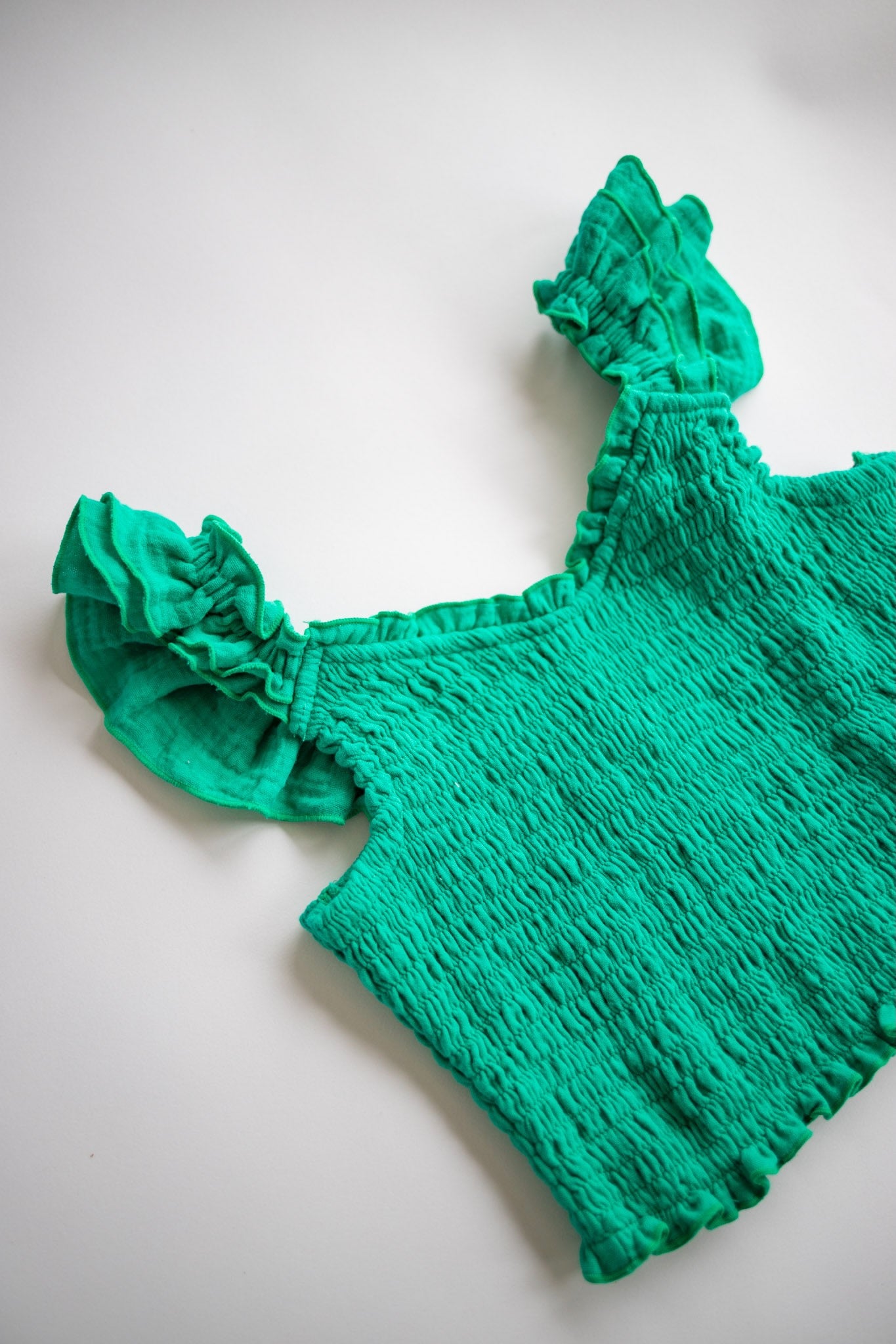 Smocked V Neck Top | Green