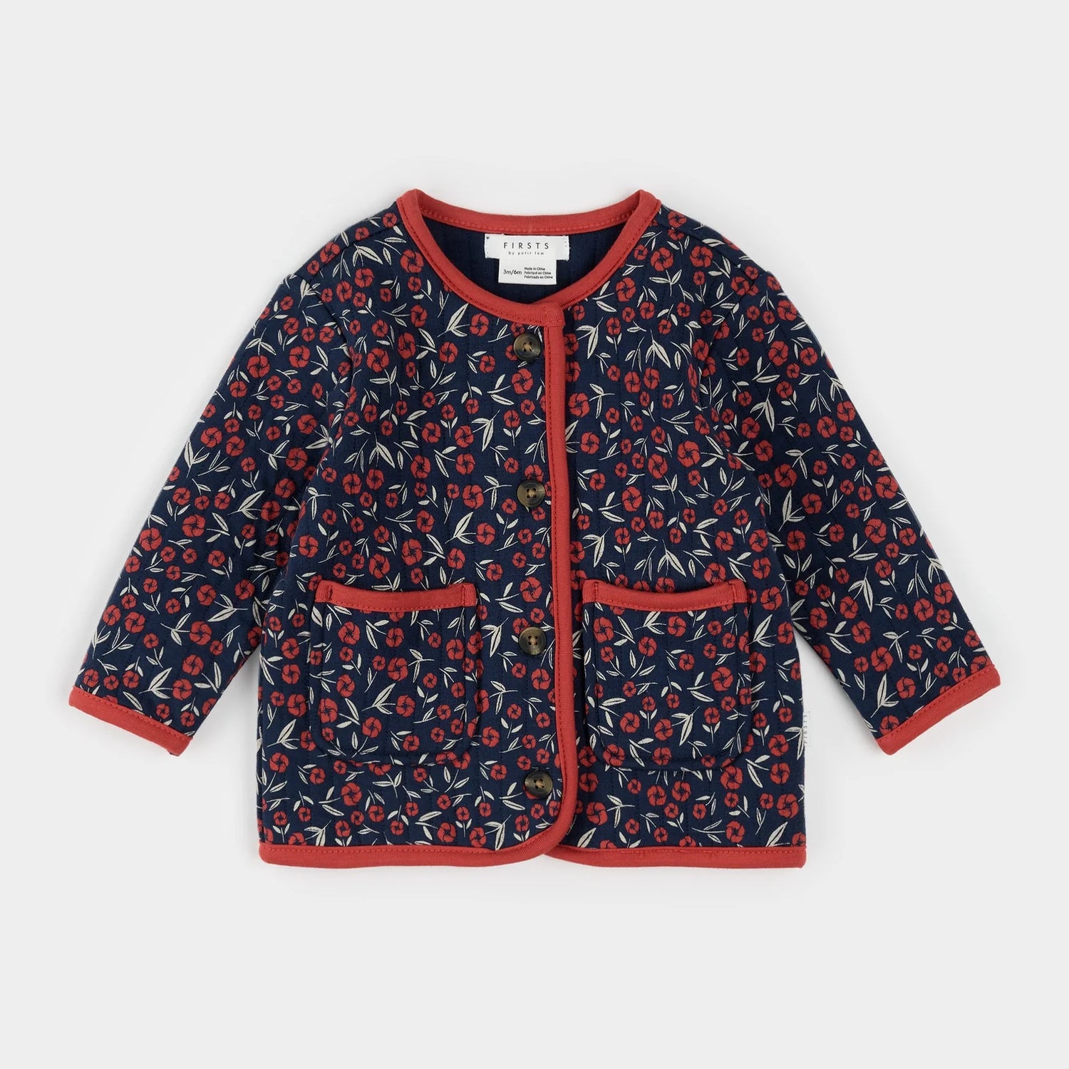 This adorable, quilted cardigan is perfect for layering and creating an all-grown-up look. Crafted from a soft blend of organically grown cotton and recycled polyester, the comfy cardigan is finished with contrasting red hems for a timeless style. It’s perfect for crisp mornings and chilly strolls.
