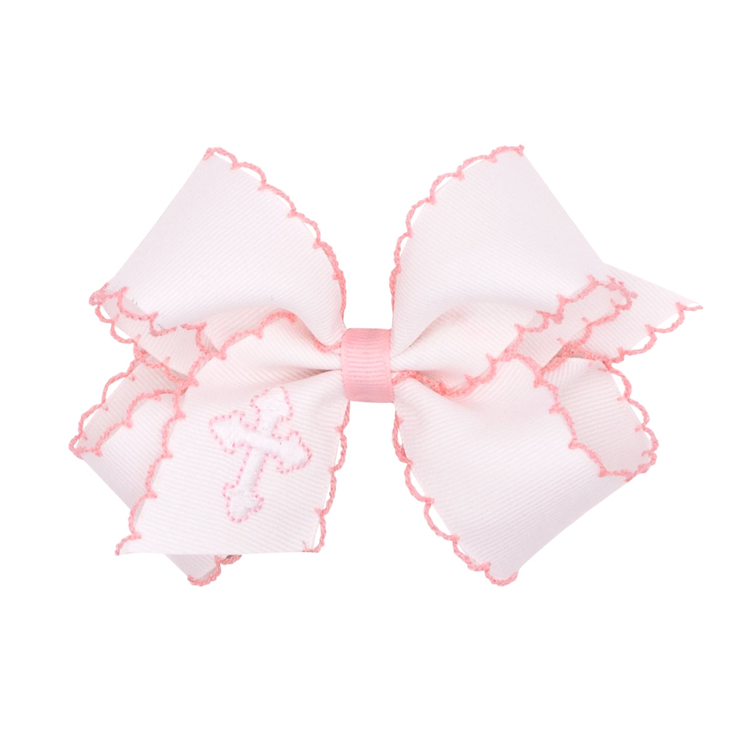 Medium Cross Embroidered Grosgrain Bow | Pink