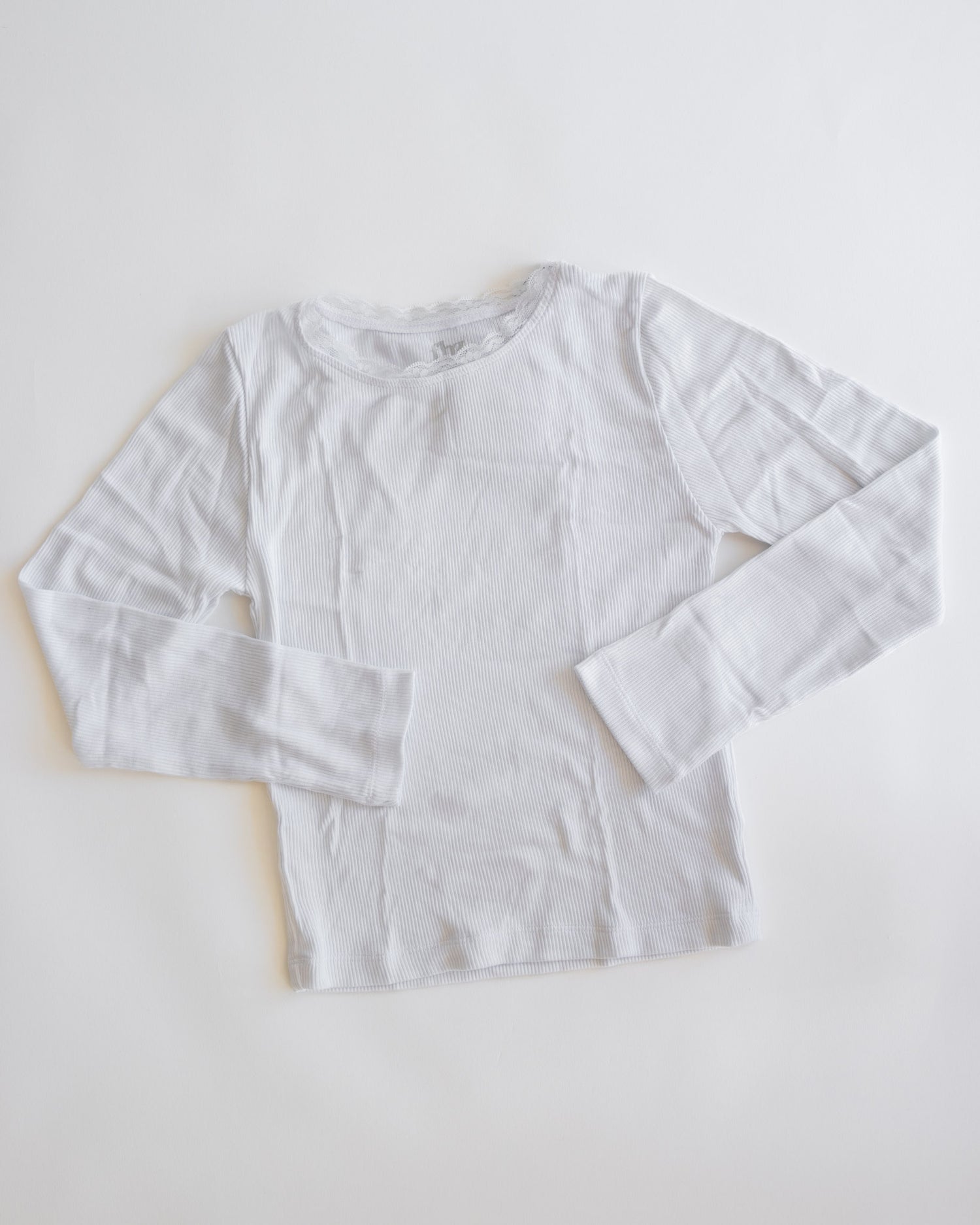 Lace Trim Ribbed Long Sleeve | White