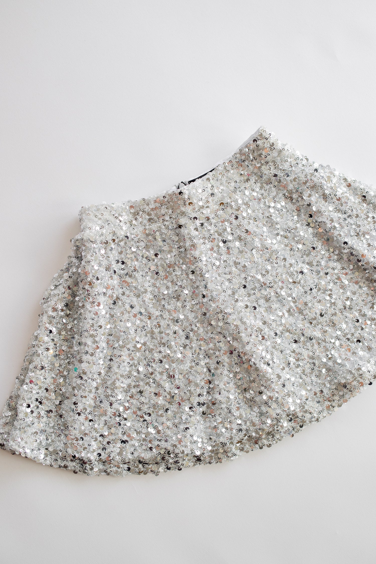Pleated Sequin Skirt | Silver