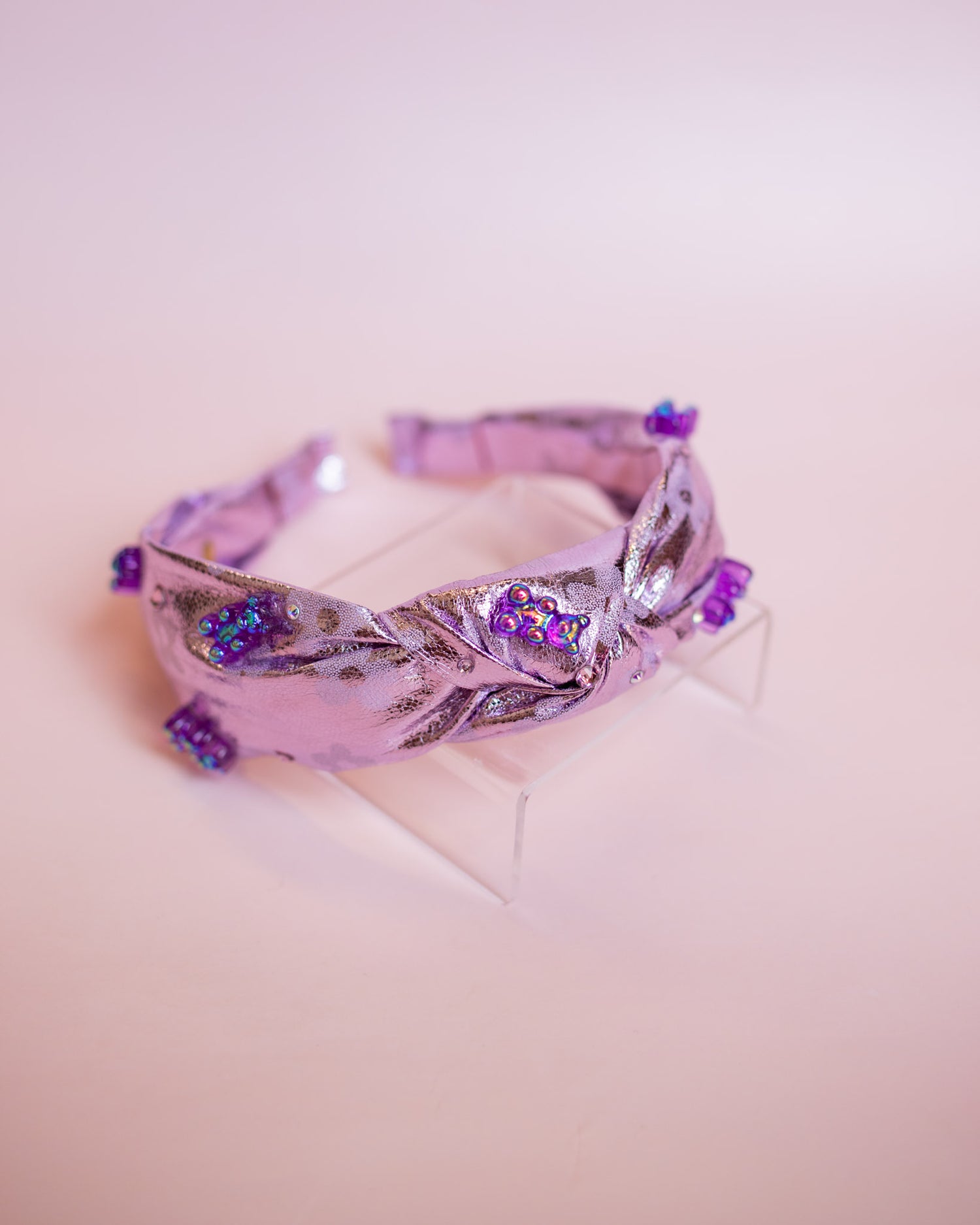 Metallic Daisy + Gummy Bear Charm Knot Headband | Purple