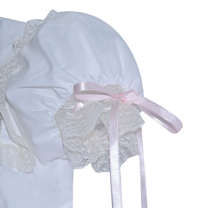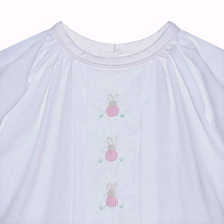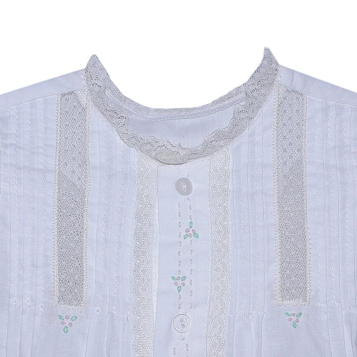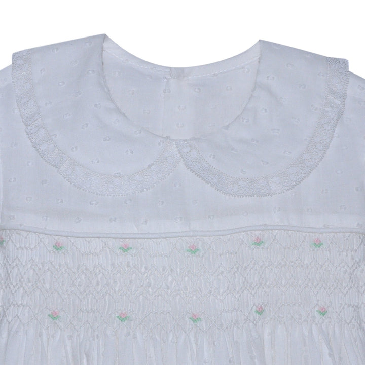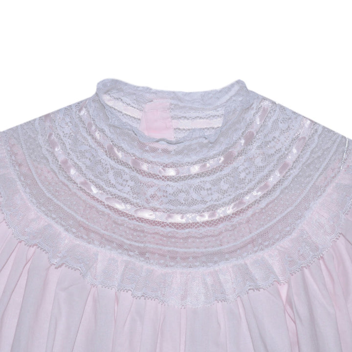 Cross Embroidered Pleated Collar Daygown | Pink Trim