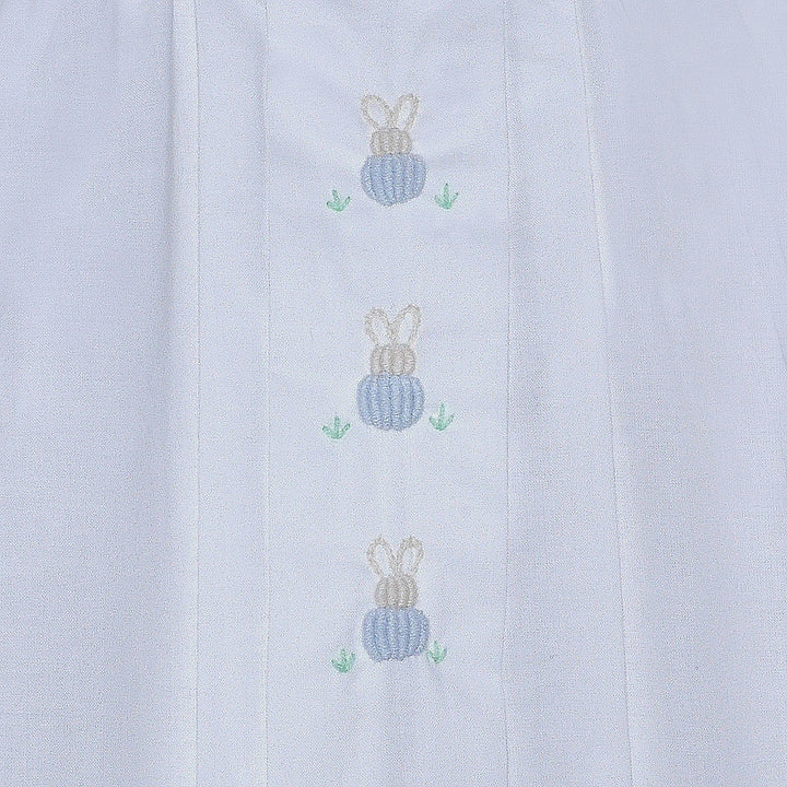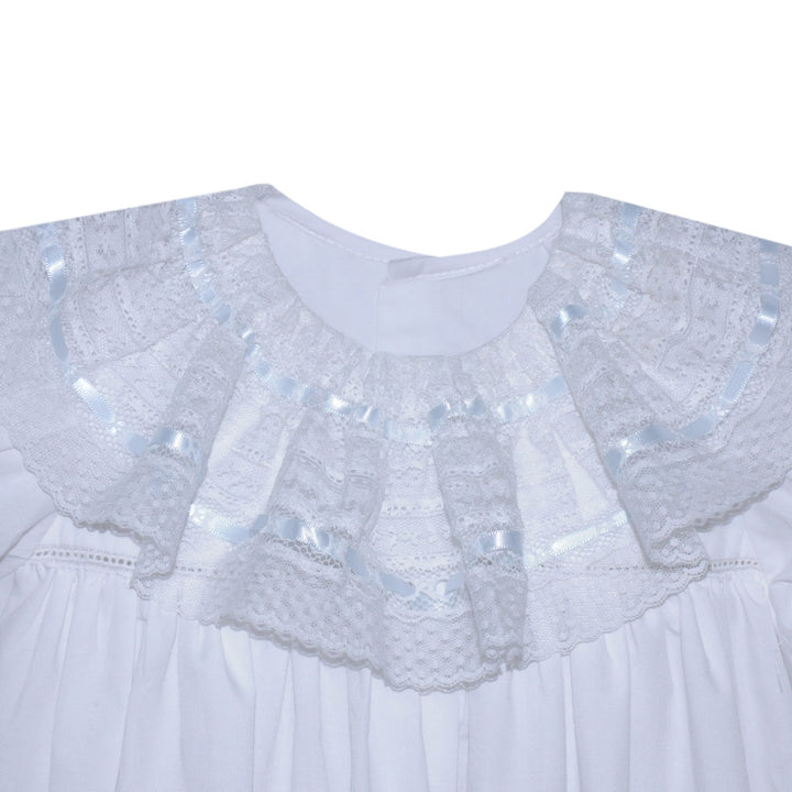 Cross Embroidered Pleated Collar Daygown | Blue Trim