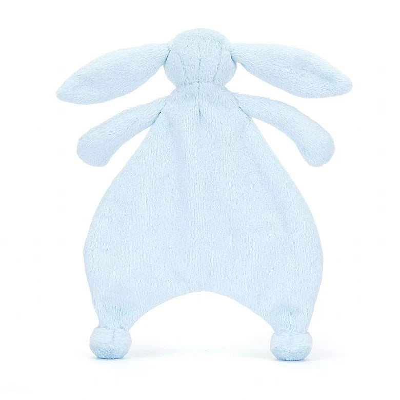 Irresistibly soft in a pale blue coloured fur made from recycled fibres, Bashful Blue Bunny Comforter features our beloved Bashful Bunny signature long lop ears, a pink suedette nose and embroidered eyes. Designed with an un-stuffed body yet delicately squashy paws and bobble feet, making it easy for little hands to grab hold of and comfort themselves. *Due to state regulations, item is unavailable for delivery to MA, OH, and PA (USA)