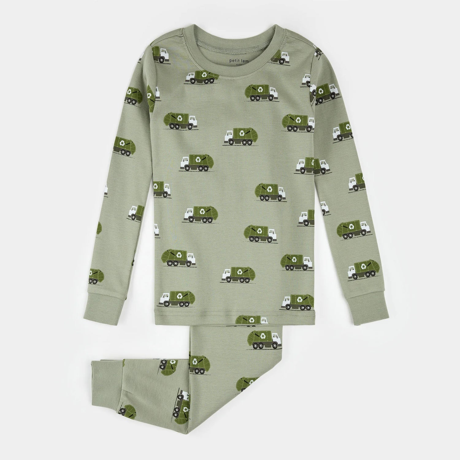 Long Sleeve Pajama Set | Green Recycling Trucks