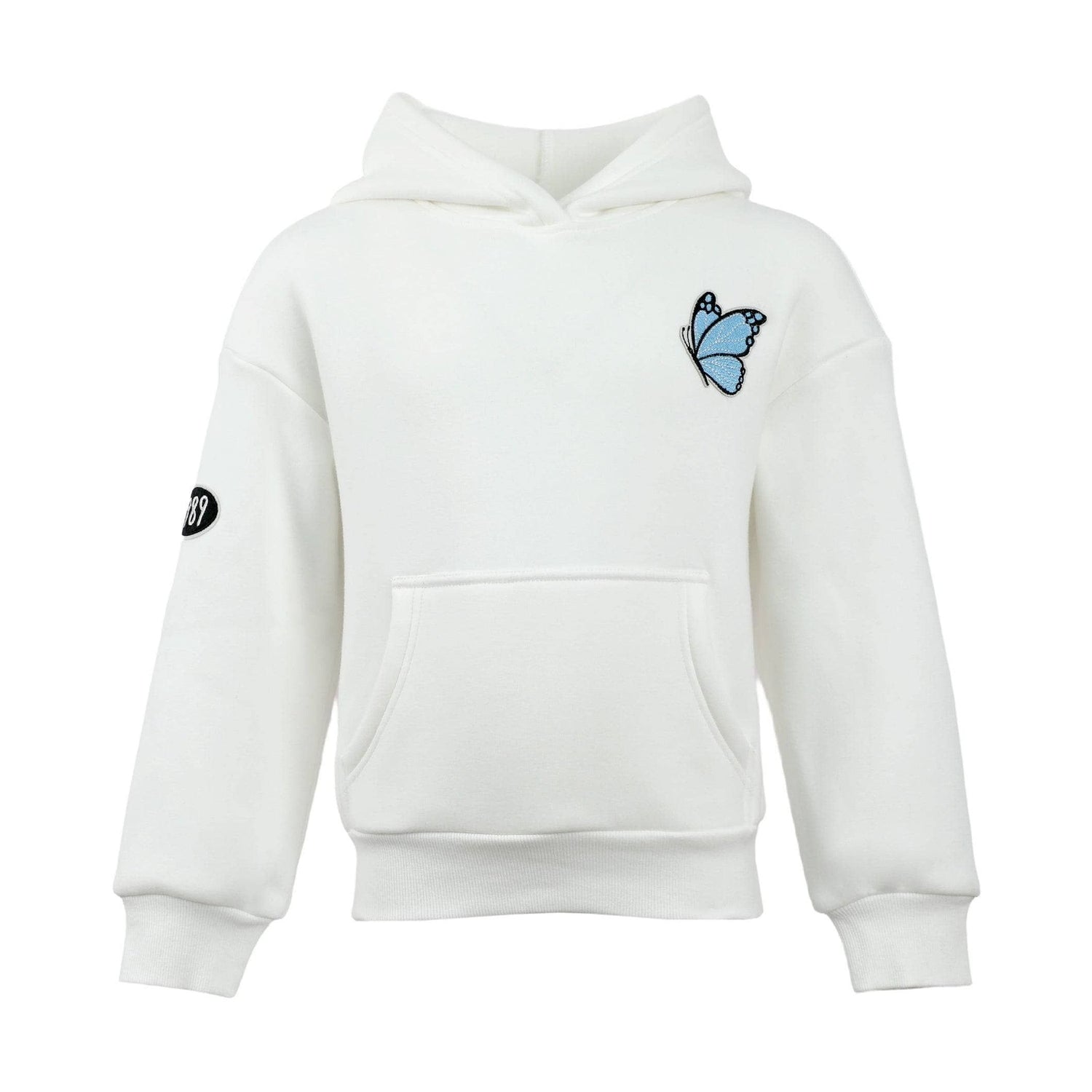 • Embellished with a delicate butterfly patch on the front and additional embroidery on the sleeve for stylish touches.