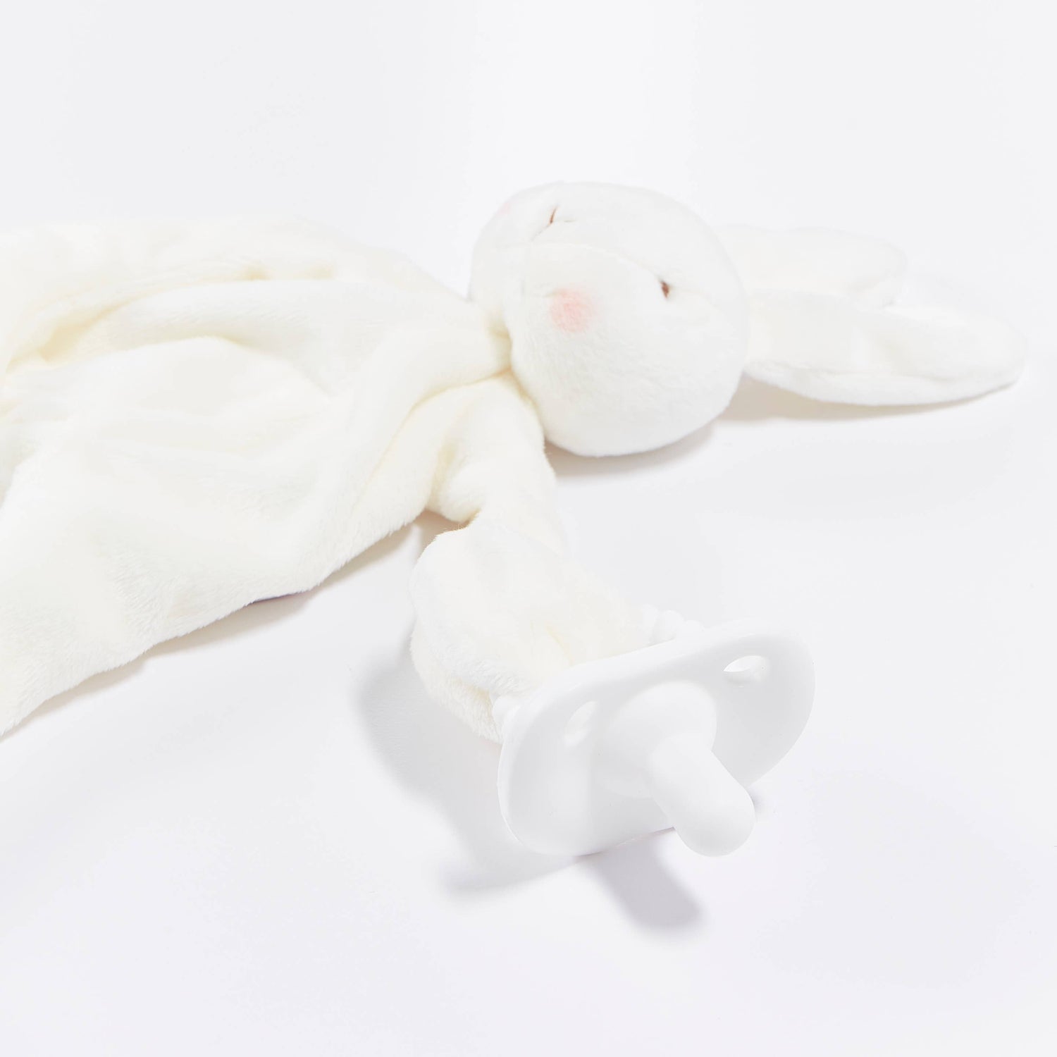 A soft silly friend for both comfort and fun; a pacifier holder and rattle in one! Features: 10" of Silly Adorableness Lovey and Pacifier In One Easy Care Machine Wash and Dry Low Heat Attaches to Car Seats and Strollers for On-The-Go Fun