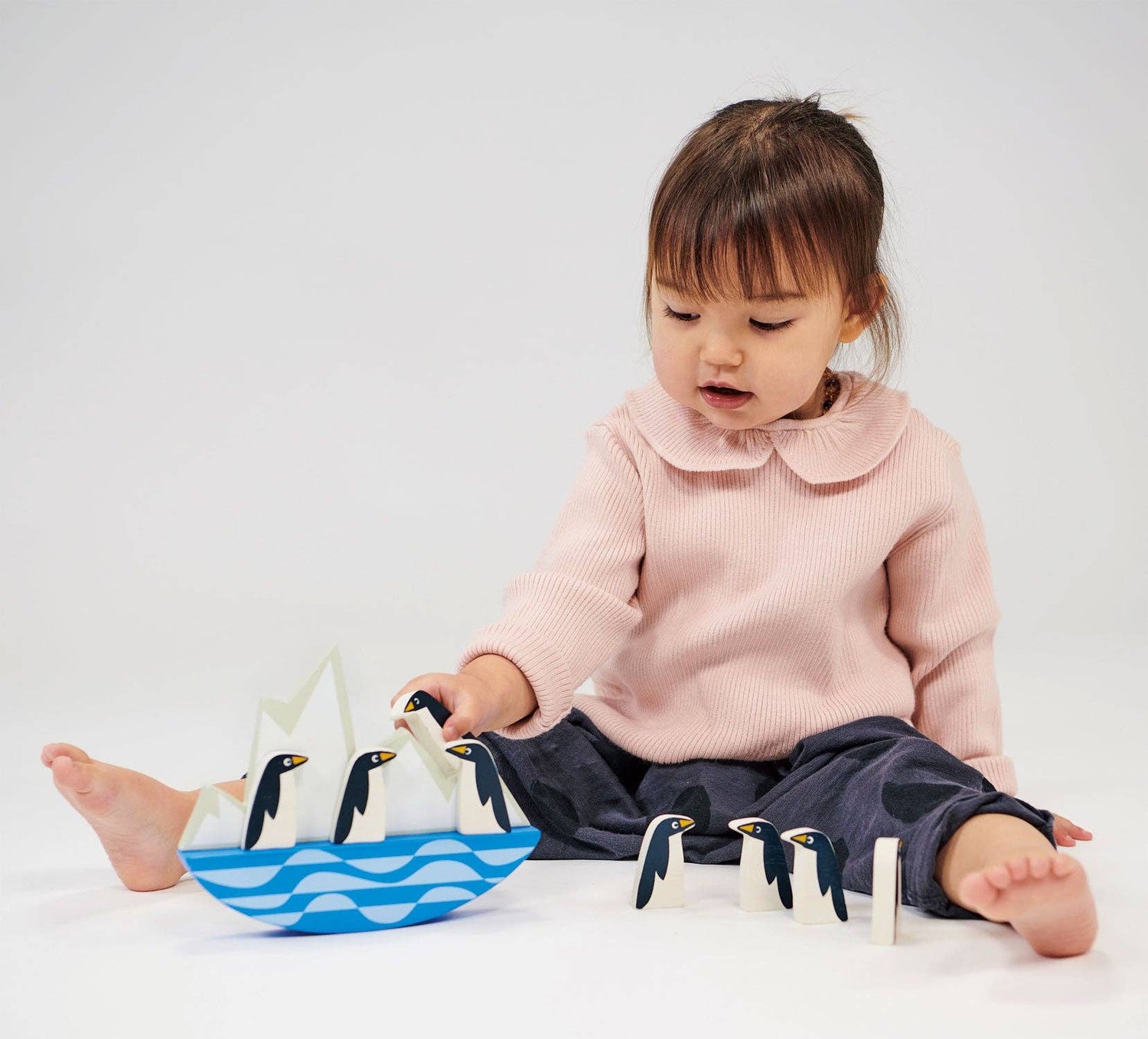This is a wooden balancing toy with 8 wooden penguins to balance on the rocking iceberg. Age range: 2 years+ Product size: 7.68 x 1.18 x 6.3’’ Weight: 0.66 Ibs