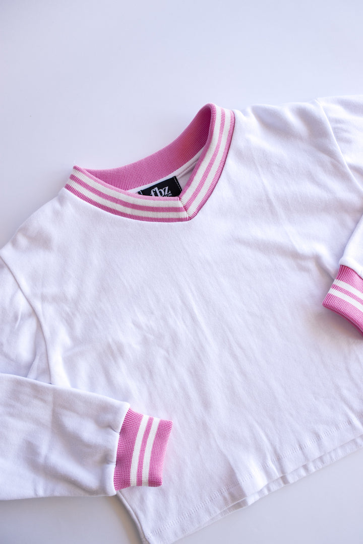 Stripe Rib Trim Sweatshirt | White + Pink