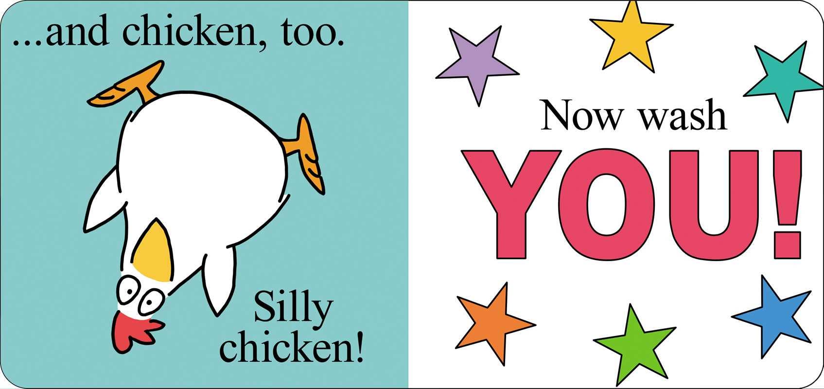 Barnyard Bath! is a waterproof cousin of Barnyard Dance!, the foot-stomping board book bestseller. And what could make tub time more fun than a book? Includes a FREE washcloth in addition to the bath book!