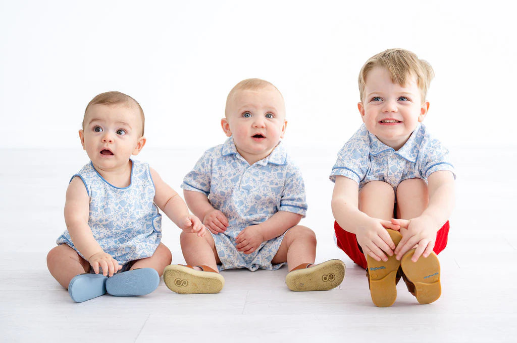 Featuring a playful blue beach-inspired motif, this timeless piece is perfect for beach trips, summer outings, outdoor play, family gatherings, and picture-perfect moments. Coordinate with matching sibling styles.