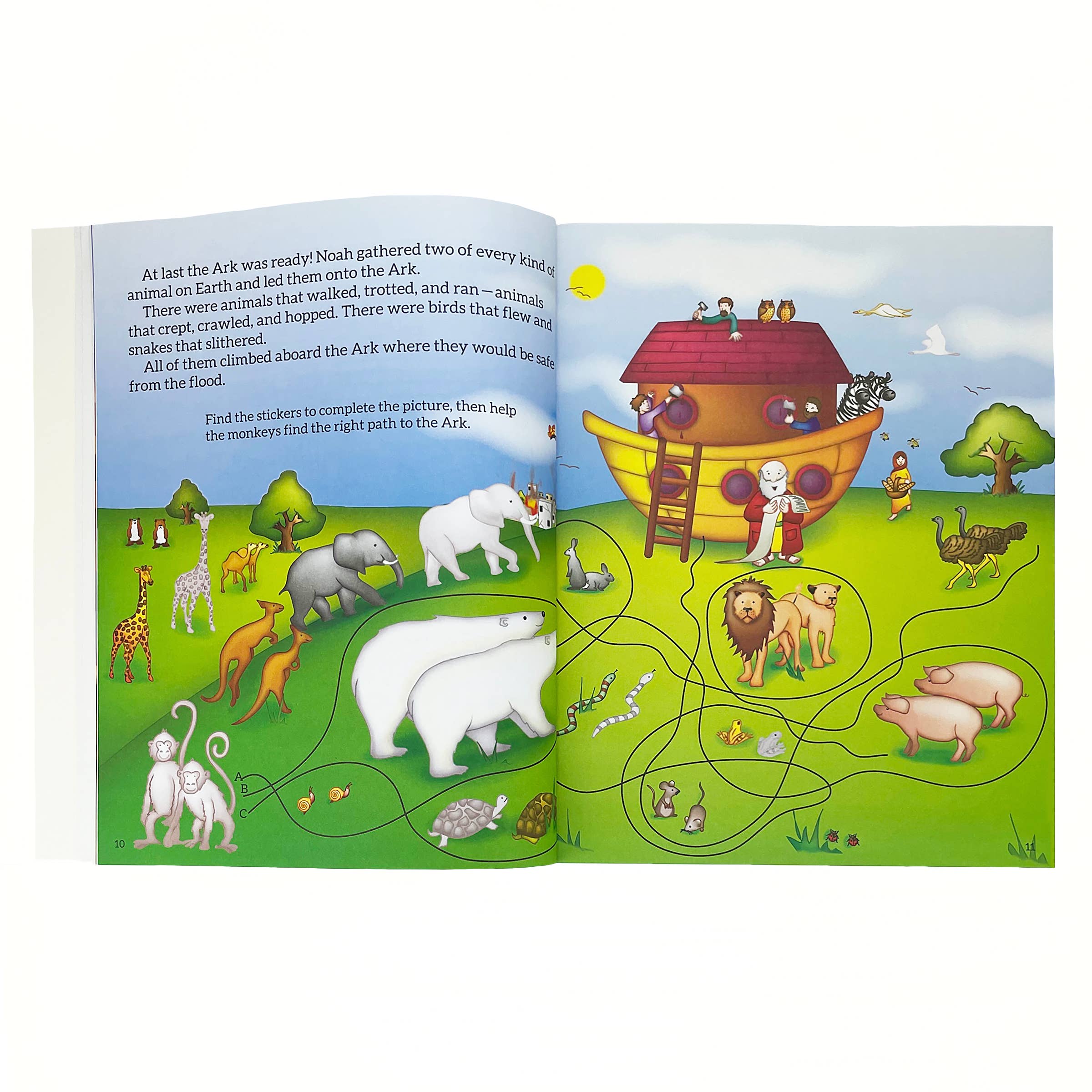 Retellings of favorite Bible stories come to life in this colorful activity book. Introduce your child to these important lessons with engaging pictures to color, puzzles to solve, and mazes to complete on every page! Enhance the sweet illustration with the included stickers. The Bible Story and Activity Book for Kids includes:
