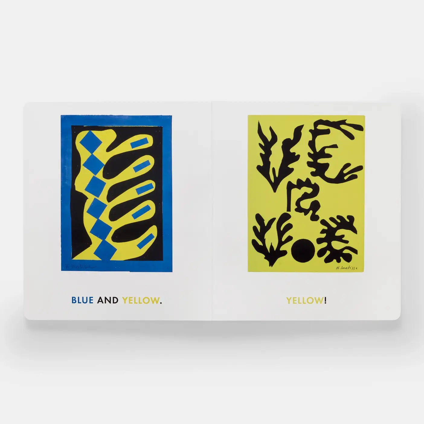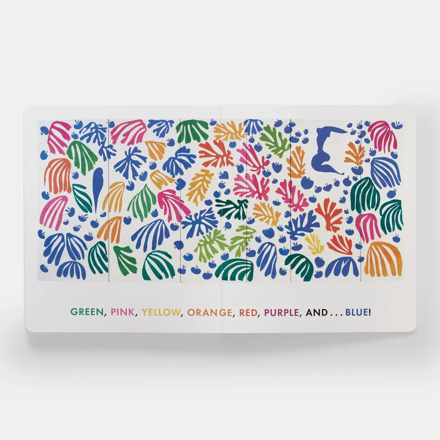 Henri Matisse’s abstract cut-outs are used to teach colors in this innovative read-aloud board book