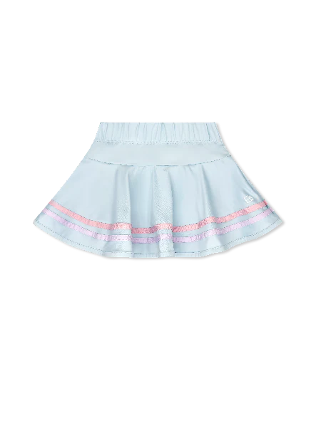 Our Callie Skort is back and will be one of her favorites. This Cotton Candy Blue skort in athleisure fabric with Cotton Candy Pink and Petal Purple welting and built-in shorts will make her the best-dressed girl for all her tennis matches.