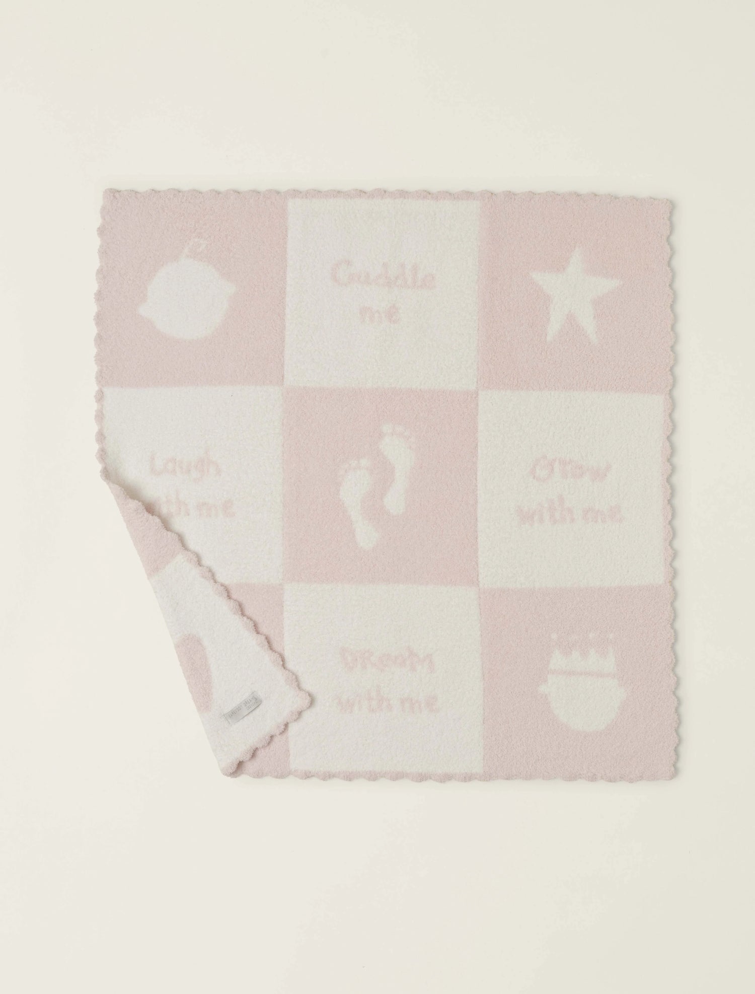 CUDDLE, LAUGH, PLAY...BAREFOOT DREAM WITH ME™ and keep your little one warm and cozy with the CozyChic® Cuddle Receiving Blanket. Featuring a bold checkerboard pattern and classic Barefoot Dreams slogans and motifs, this blanket is both stylish and luxurious. Crafted with scallop edging detail and a generous circumference, your child can stay cozy and comfortable in this cozy, snug blanket all year long.