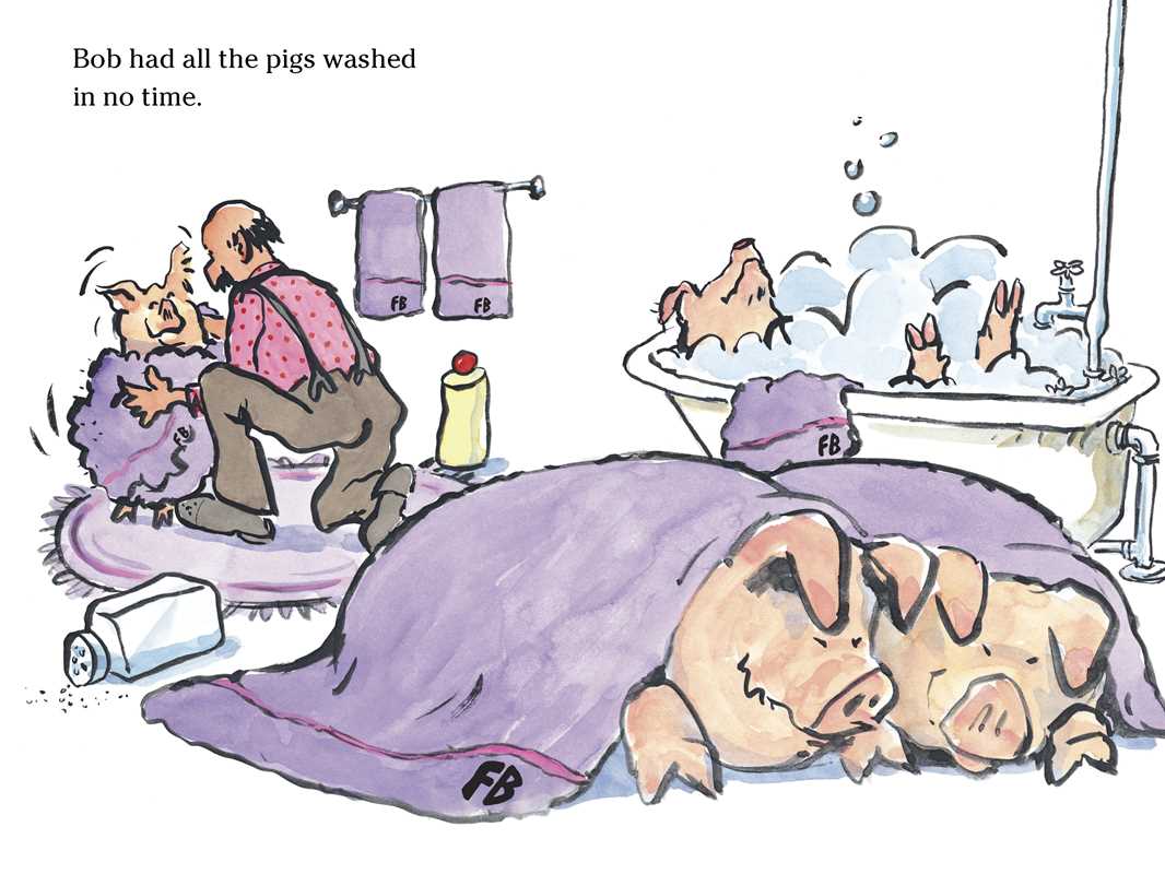 Bob follows the instructions in Farmer Brown’s notes exactly. He orders pizza with anchovies for the hens, bathes the pigs with bubble bath, and lets the cows choose a movie.