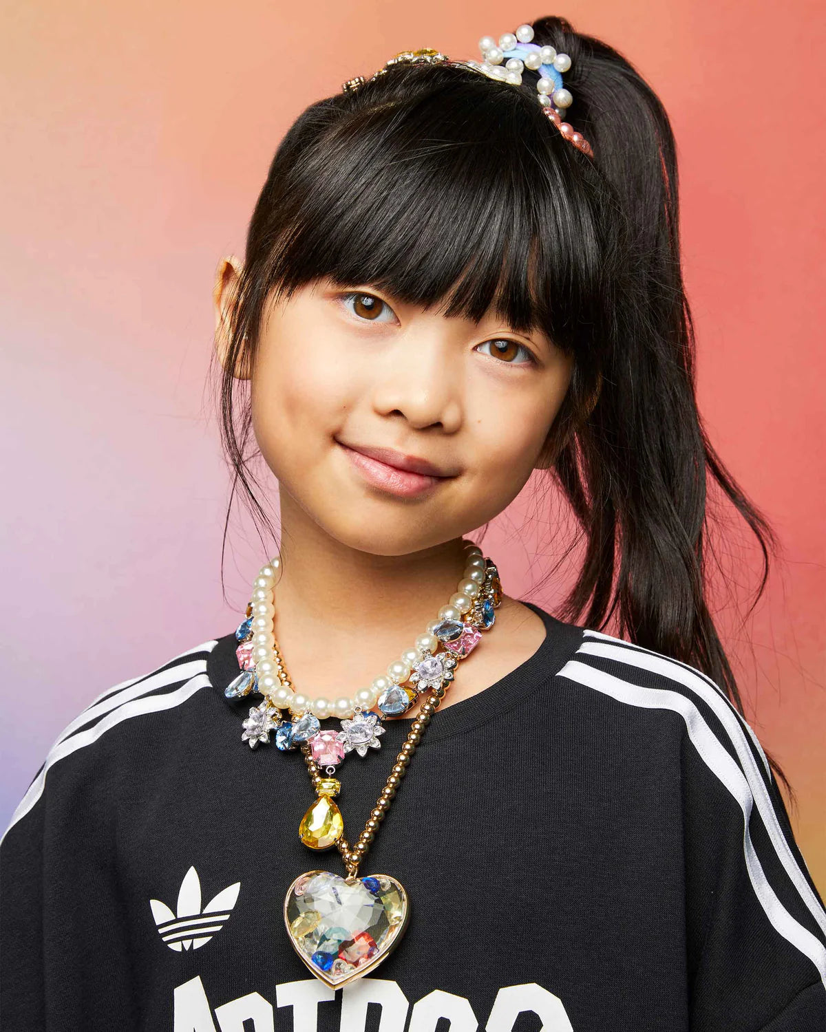 While some people wear their hearts on their sleeves, others wear their hearts… as jewels! Set includes a stretchy “gold” necklace with a gem-filled heart pendant that sparkles and shakes! Show off your shimmering heart of gold with this statement-making necklace that will bring a little love to your daily looks.