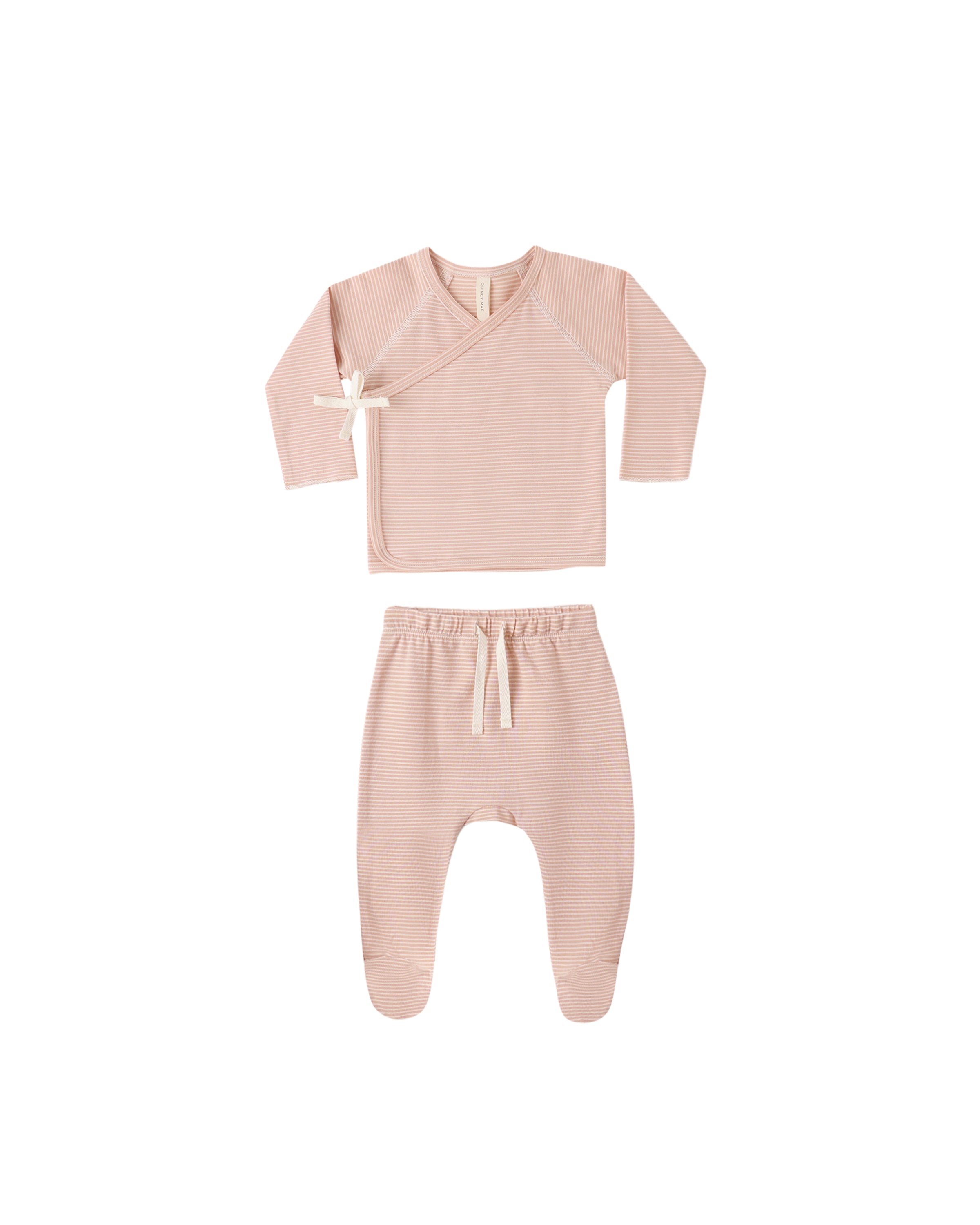 WRAP TOP + FOOTED PANT SET MELON MICRO STRIPE