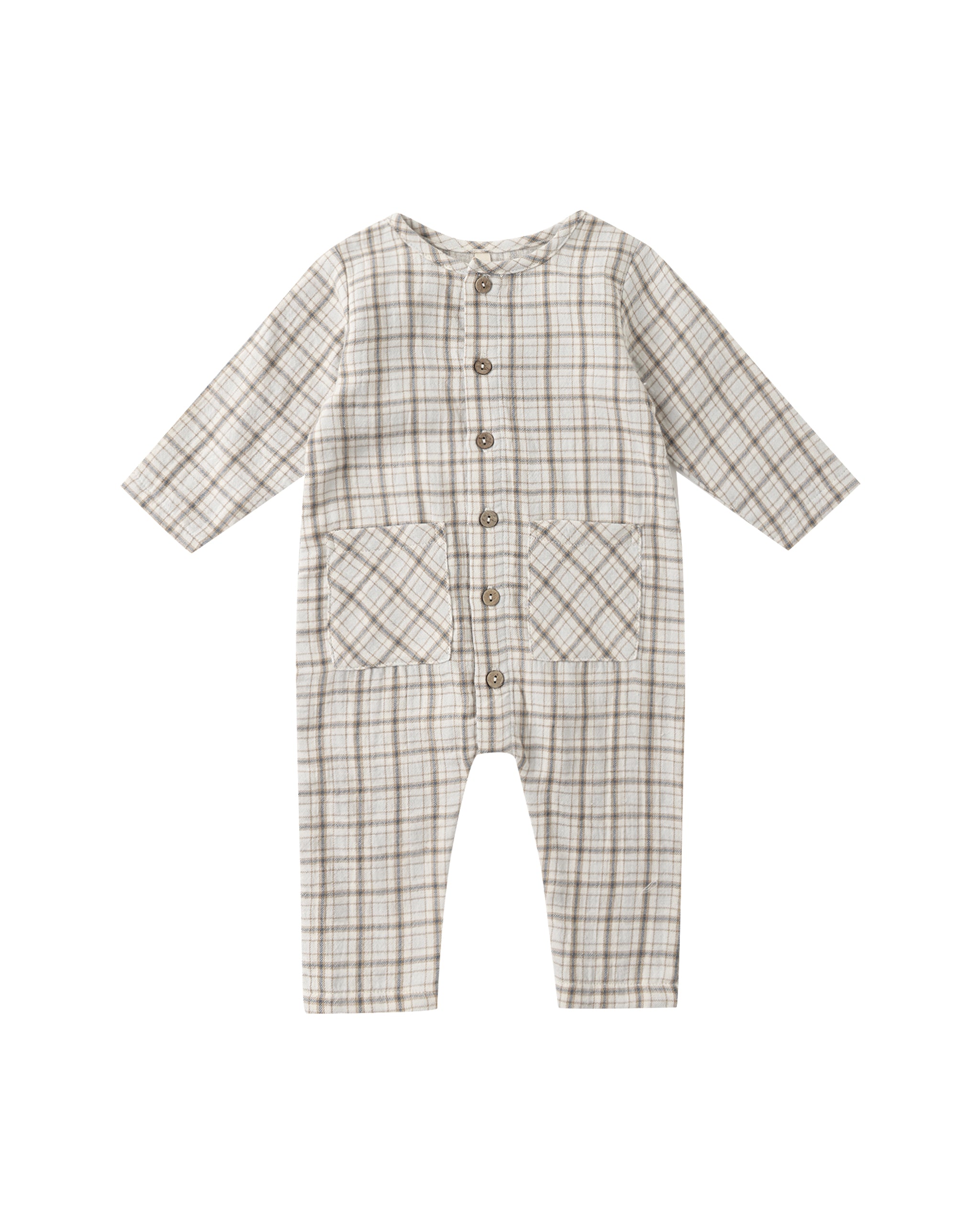 POCKETED WOVEN JUMPSUIT || BLUE PLAID