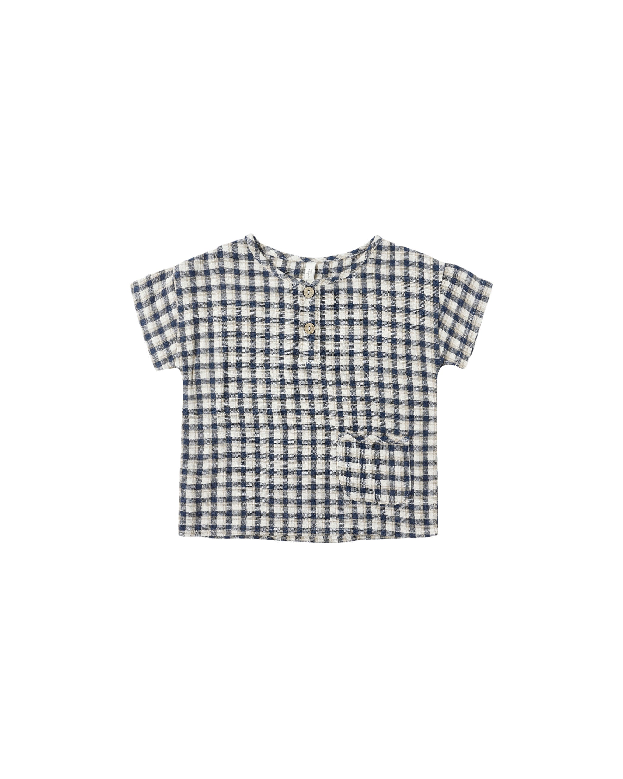 WOVEN HENLEY TEE || NAVY CHECK