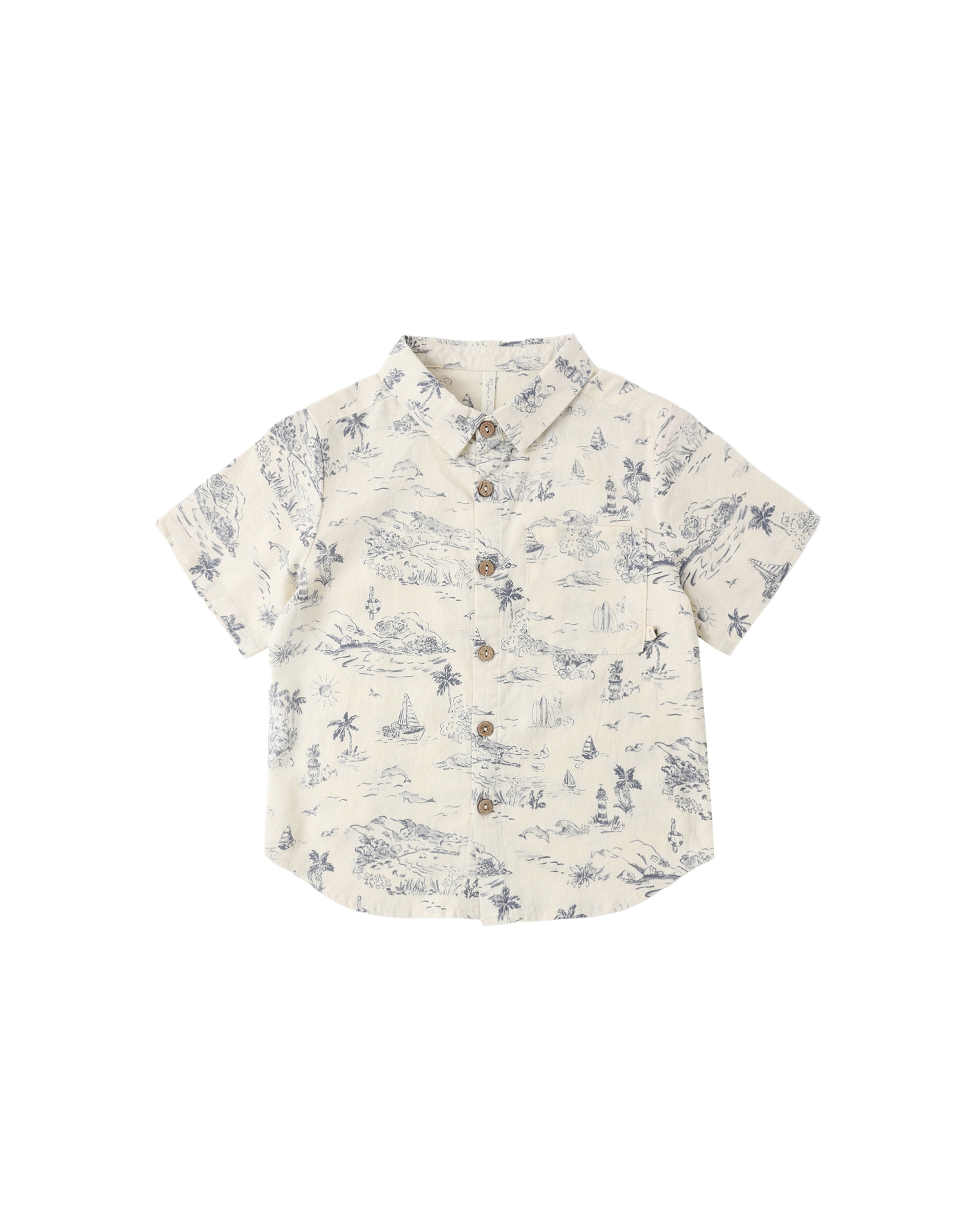 COLLARED SHORT SLEEVE SHIRT OCEAN TOILE