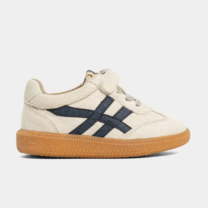 Classic meets cool in the SASHA MINI in Deep Blue. This sporty silhouette gets a modern update with crisp off-white faux suede, contrasted by bold deep blue accents and our signature gum sole for a nostalgic vibe. Whether it’s playground time or picture day, this sneaker delivers both comfort and standout style. Toddler sizes feature velcro closures for easy on and off.