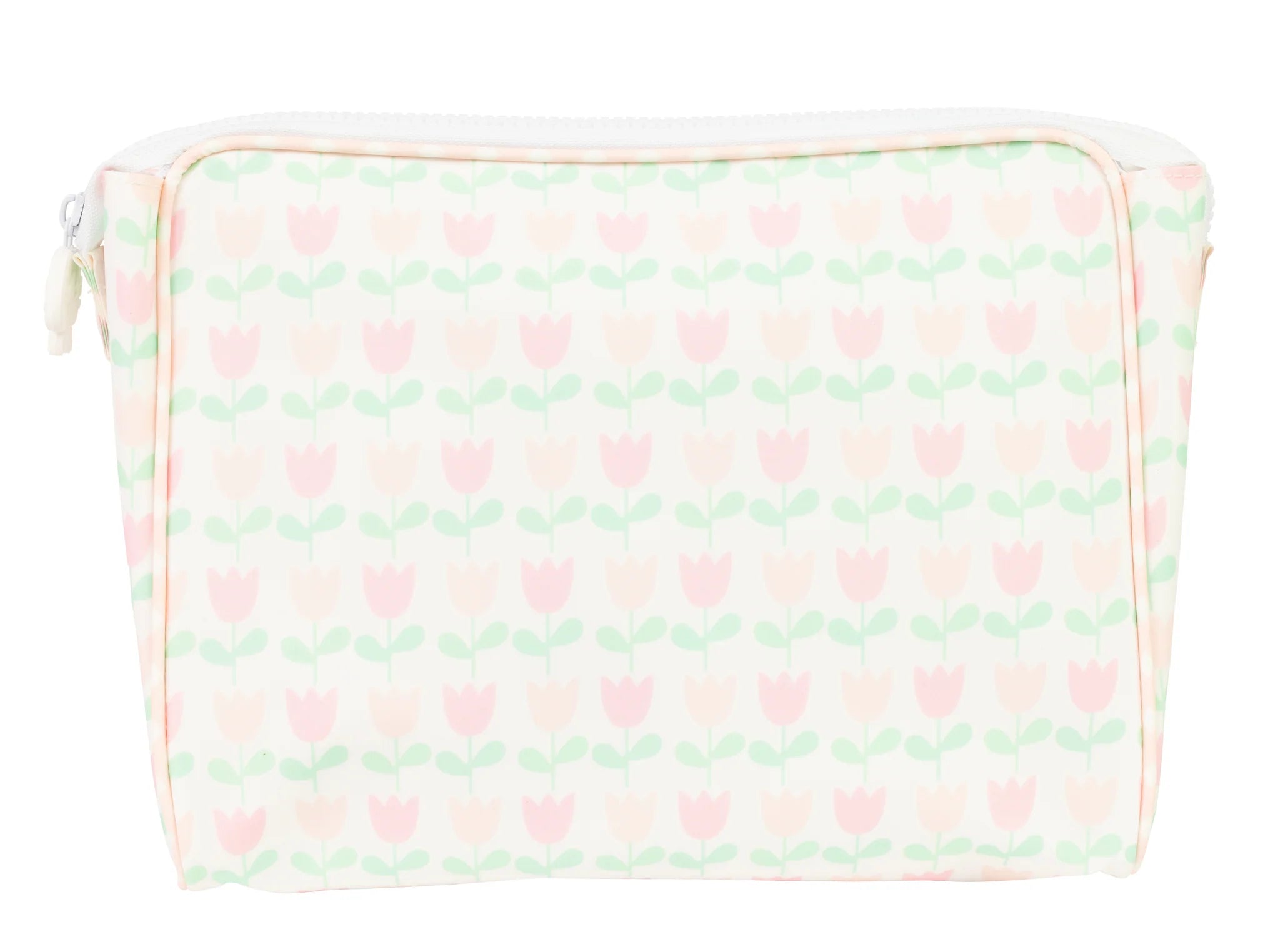 The Go Bag is just that - a bag for your things on the go! Diapers/wipes, makeup, toys, sunscreens, pacifiers, all the things organized to grab and go.