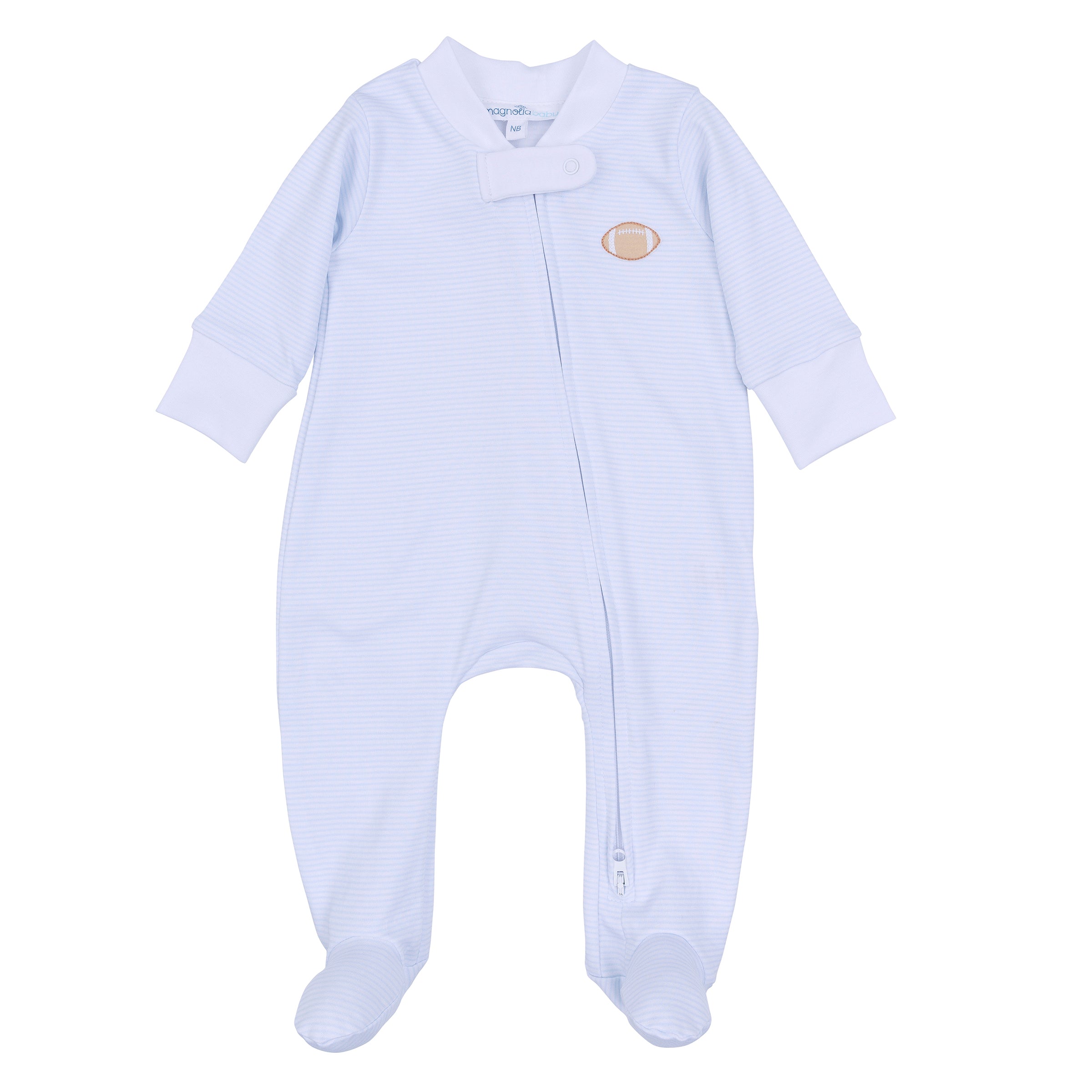 Touchdown Cutie Embroidered Zipper Footie | Light Blue